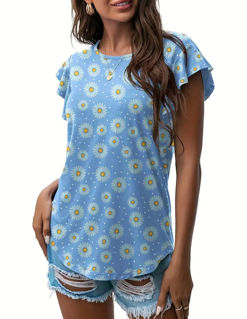 This adorable daisy top is super cute. The flutter sleeves make it a must have.