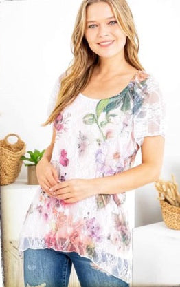 This beautiful lace sheer floral top is so cute and feminine. It is a must have.