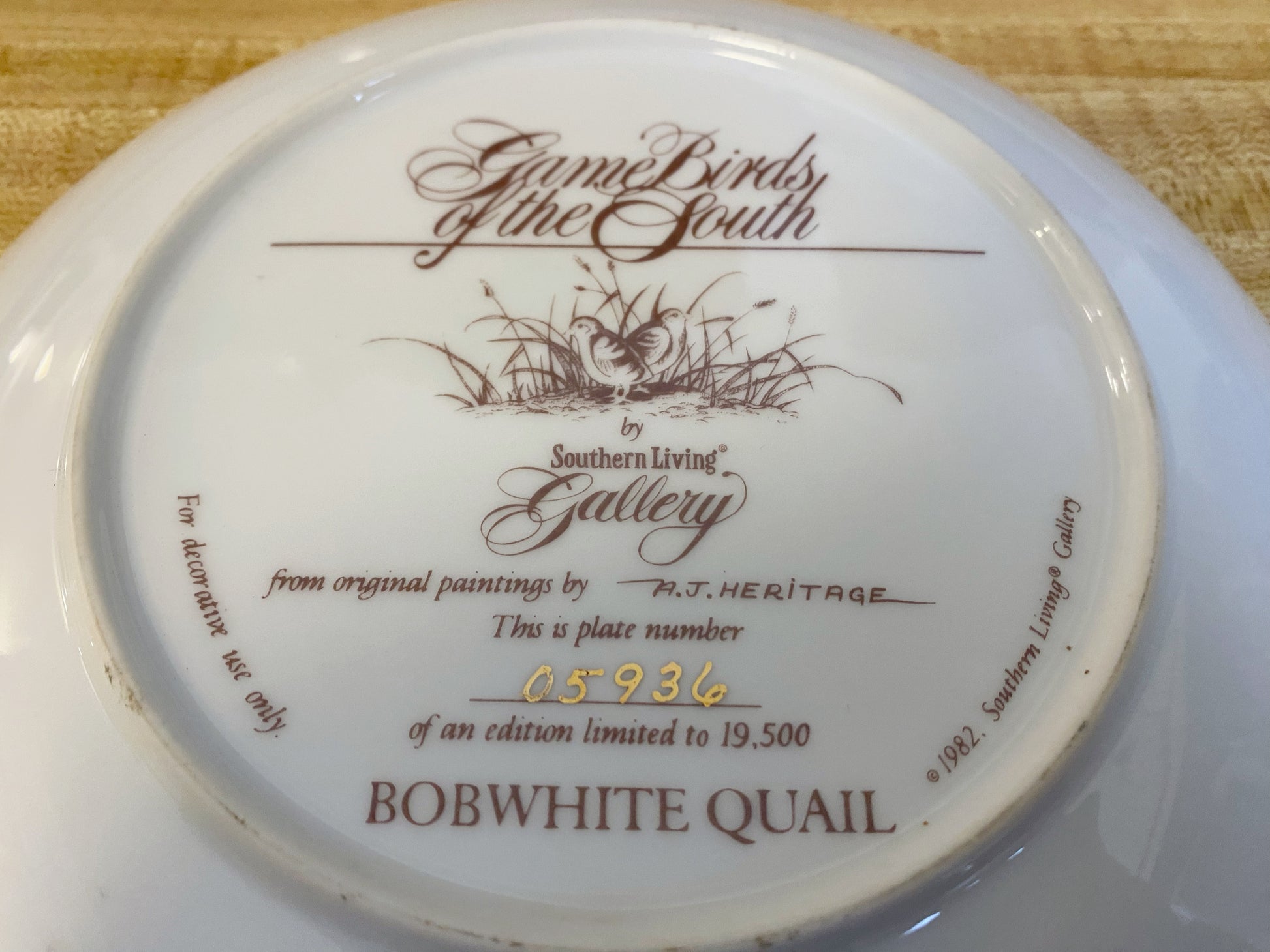Game Birds of the South Decorative Plate: Bobwhite Quail