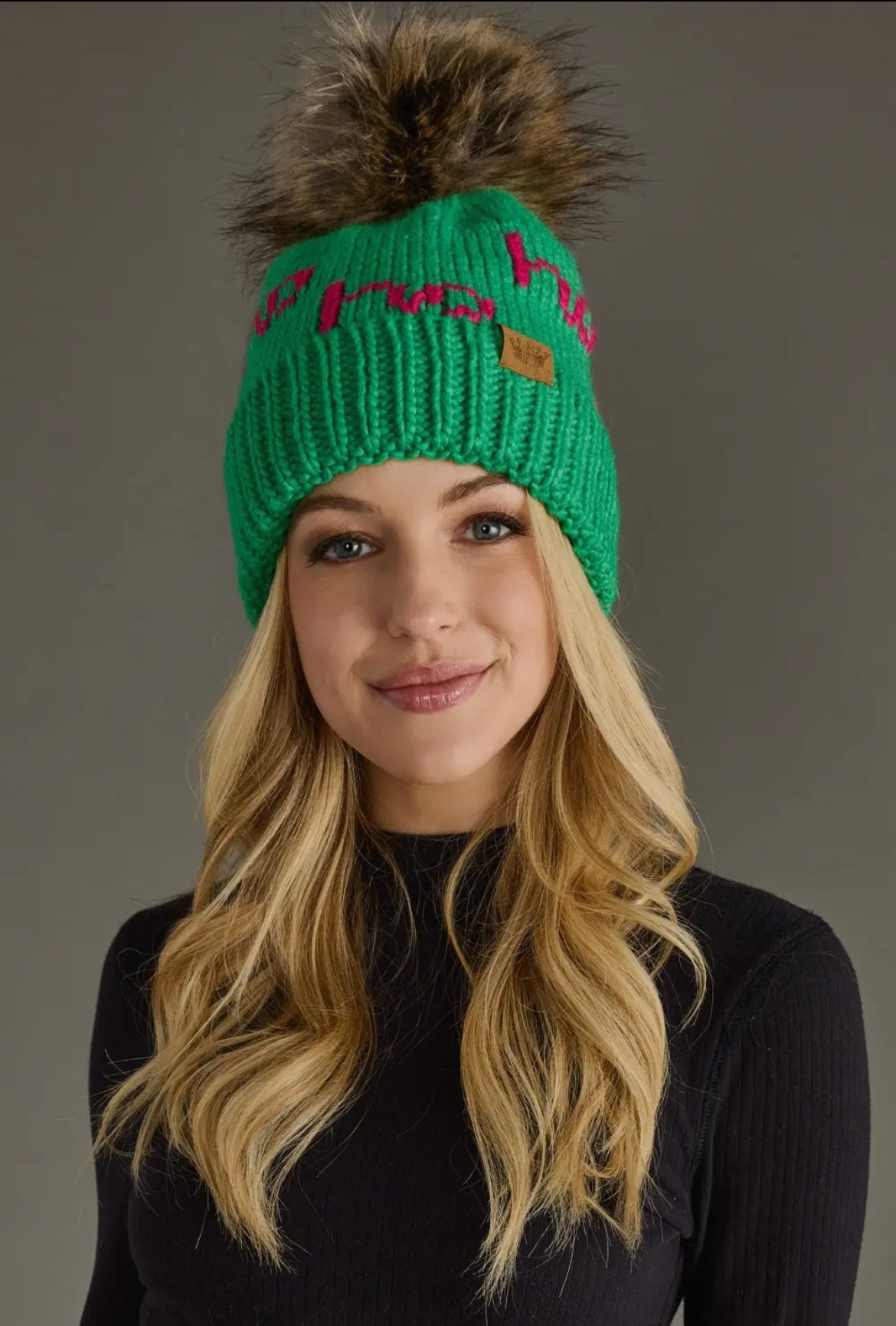 Green and pink Ho Ho Ho Pom Beanie