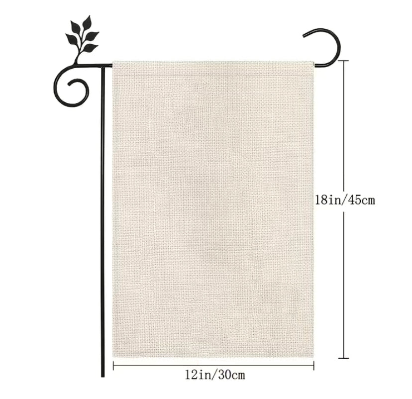 Double sided, weather resistant, linen/burlap material, high quality garden flag