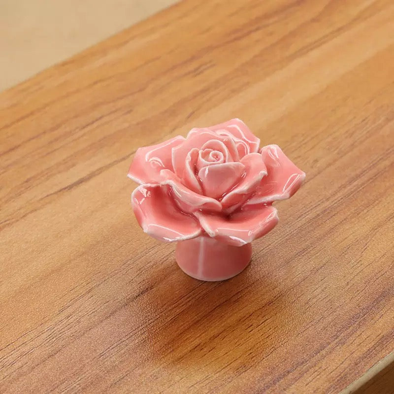 Pink flower knobs Set of 4