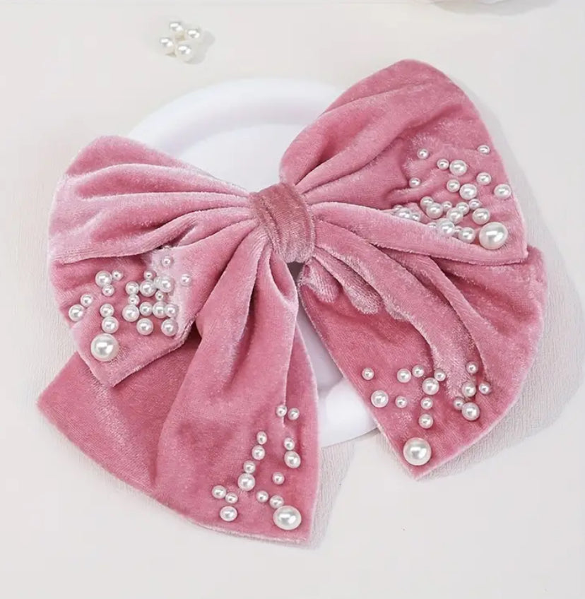 Add some style to your hair with this cute and unique Pink Pearl Bow Hairclip!
